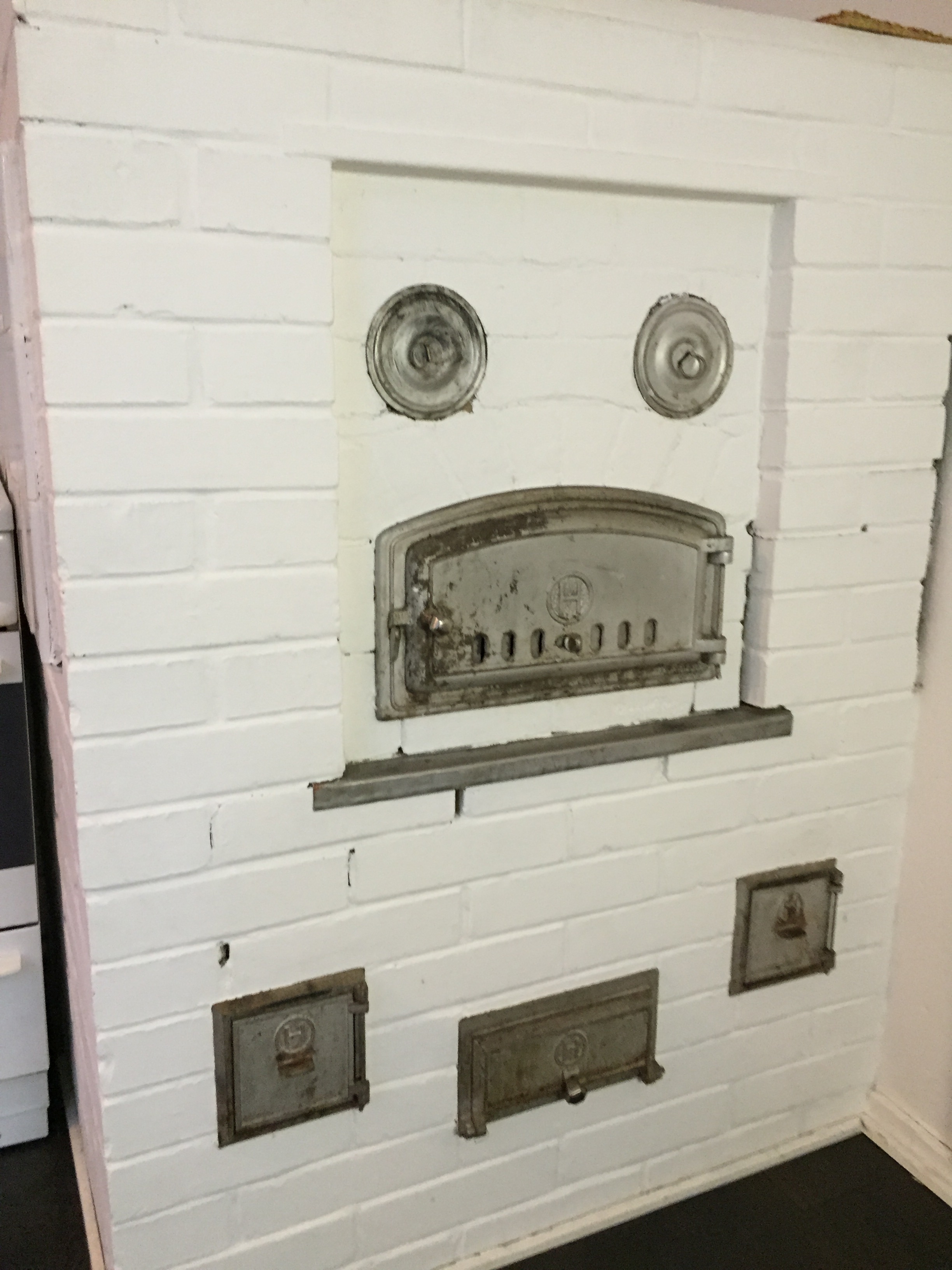 This is the original wood stove in the kitchen. There’s a working stove beside it.